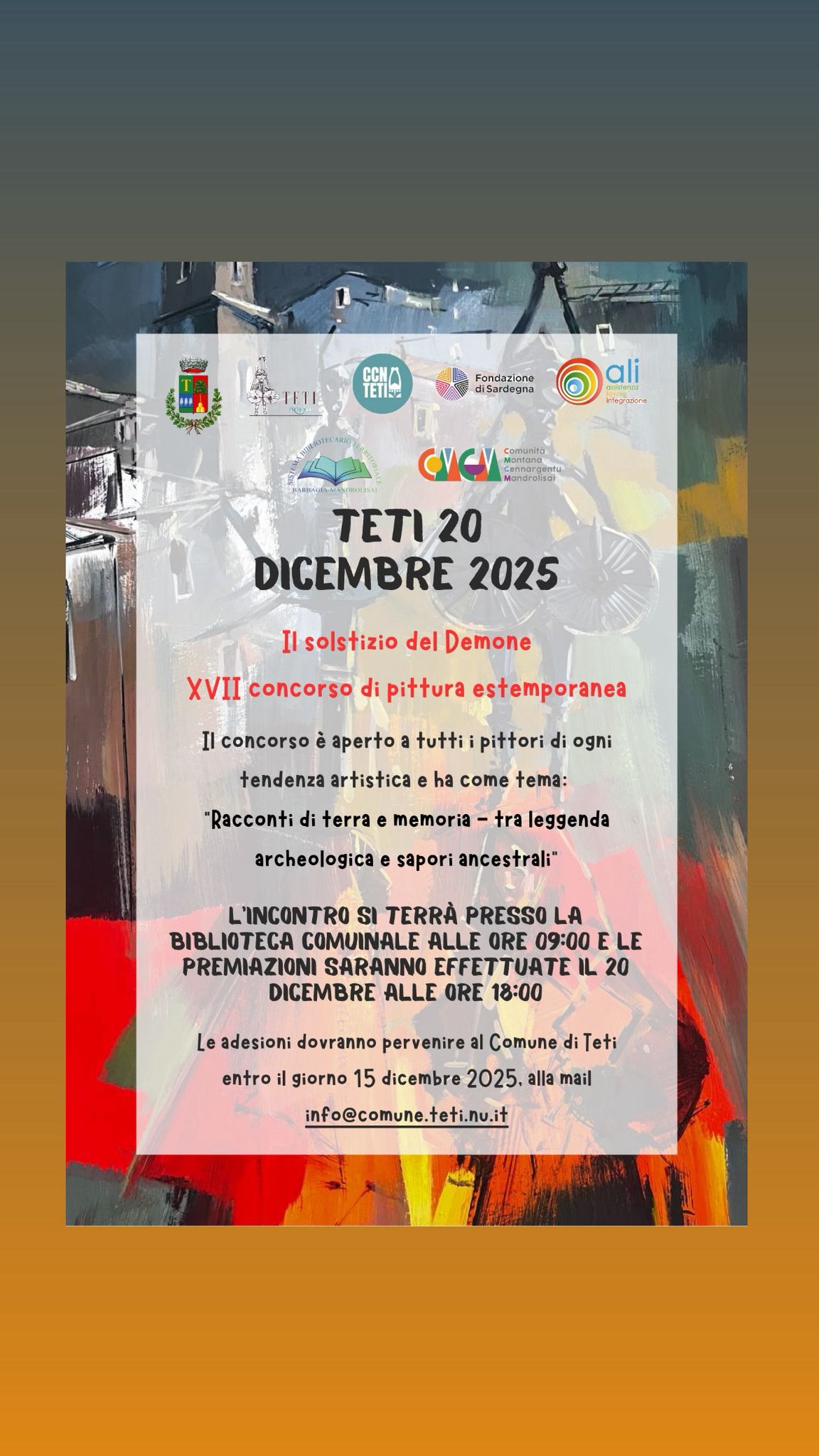 Teti 20 dicembre 2025 IL XVII° CONCORSO DI PITTURA ESTEMPORANEA “Racconti di terra e memoria- tra leggenda archeologia e sapori ancestrali”